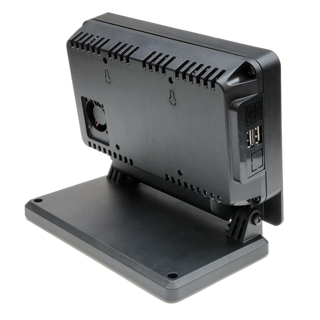 This case creates an all-in-one Raspberry Pi computer with a single USB-C port or Micro USB port in the back to power the components within the case. The Raspberry Pi is mounted behind the display and the ports are flush with the edge. An included port blocking part allows you to only allow access to the ports that you want to be exposed.