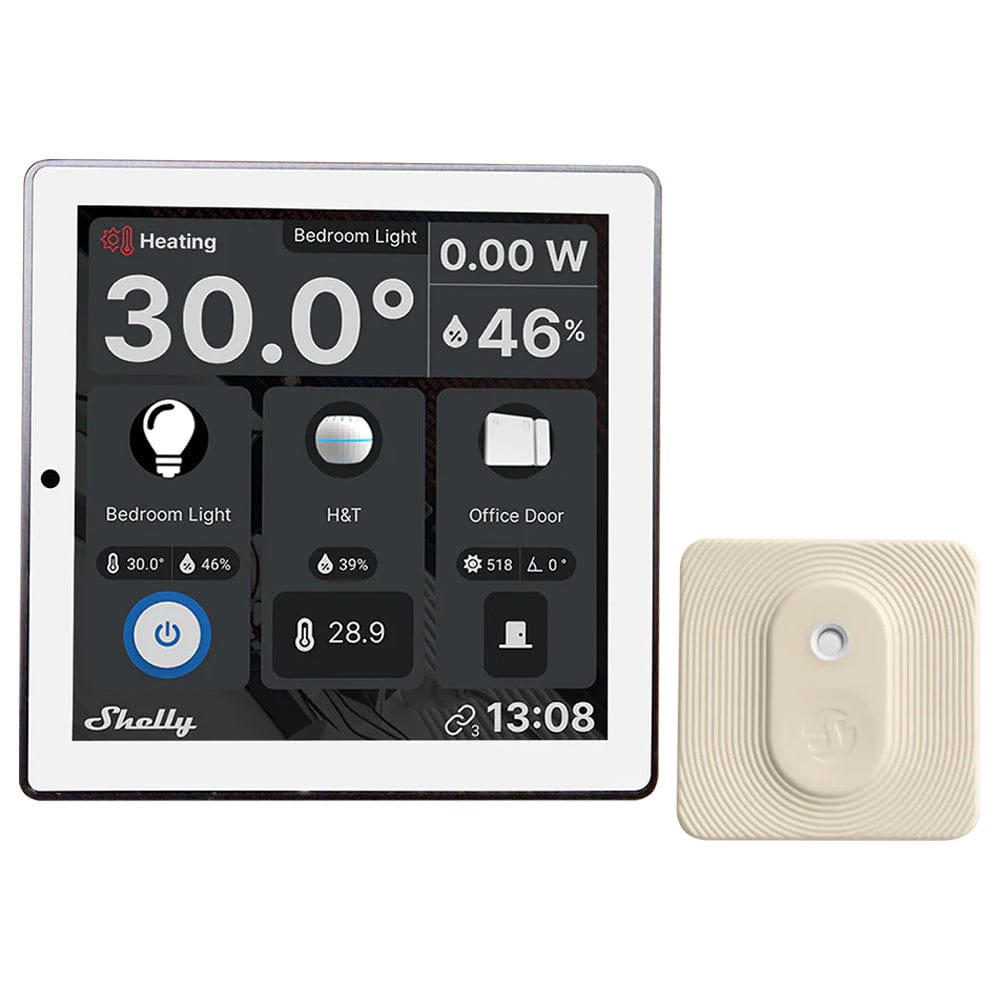 The Shelly Wall Display + H&T is a bundle of the Shelly Wall Display and a Shelly BLU H&T (Humidity & Temperature Sensor), available in two different colour options (the wall display is no longer available as a standalone product).